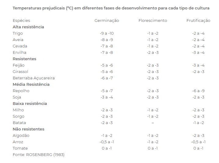 As geadas, características dessa estação, podem causar danos as plantas e por isso, quanto mais nutrida a planta estiver (quanto maior o teor de sais minerais) menores serão as chances da planta congelar, prejudicando seu desenvolvimento ou, até mesmo, matando a planta. Nesse caso, a temperatura varia de espécie para espécie, sendo que algumas plantas são mais tolerantes a temperaturas menores e outras não. Veja a foto: