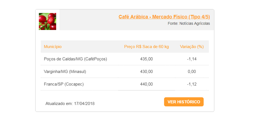 Segue uma lista atualizada constantemente sobre os preços e variações das sacas de café, para você ter uma breve noção dos valores.