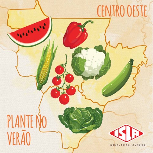 CENTRO OESTE - O verão nessa região beneficia o plantio de: Cenoura; Milho; Tomate; Pimentão; Abobrinha; Melancia; Couve-Flor e Repolho