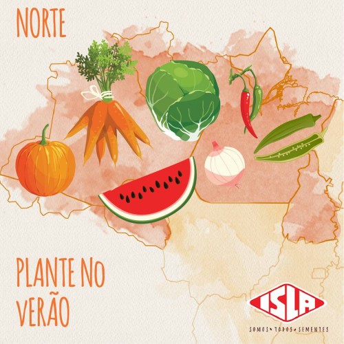 NORTE -  Assim como no nordeste, os agricultores dessa região com altas temperaturas devem investir na plantação de: Abóbora; Melancia; Cenoura; Maxixes; Pimenta; Quiabo; Couve-Flor; Cebola e Alface.