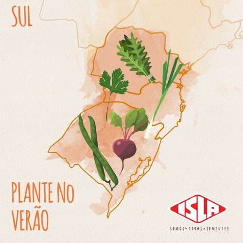 SUL - A região do Brasil que possui as temperaturas mais baixas ao longo do ano, devem aproveitar a época para plantar as espécies que se adaptam bem ao calor da estação como: Beterraba; Couve Manteiga; Feijões; Agrião; Coentro; Cebolinha; Mostarda; Rúcula; Espinafre e Salsa